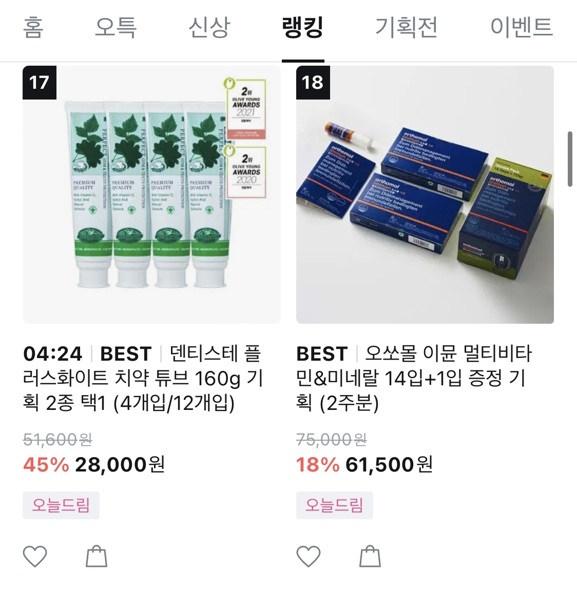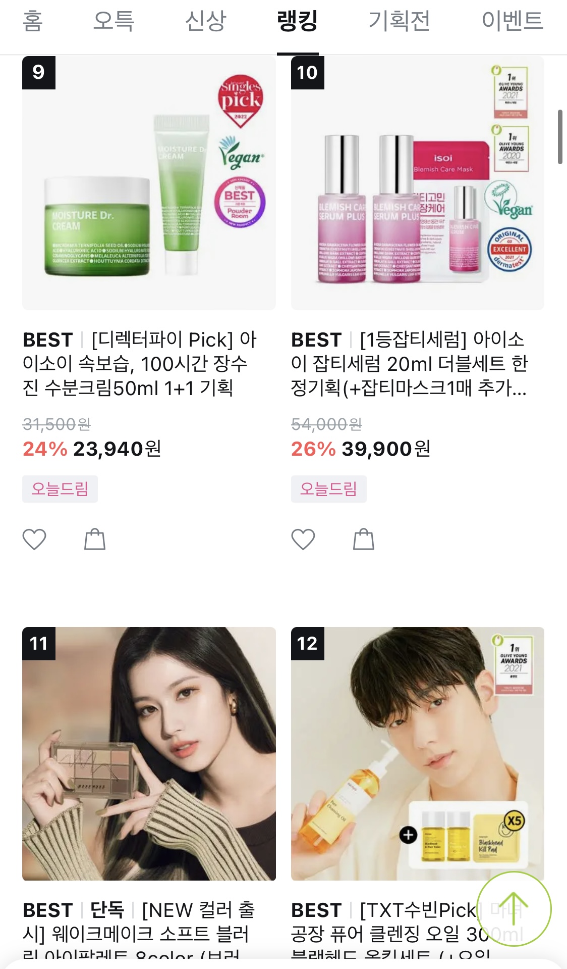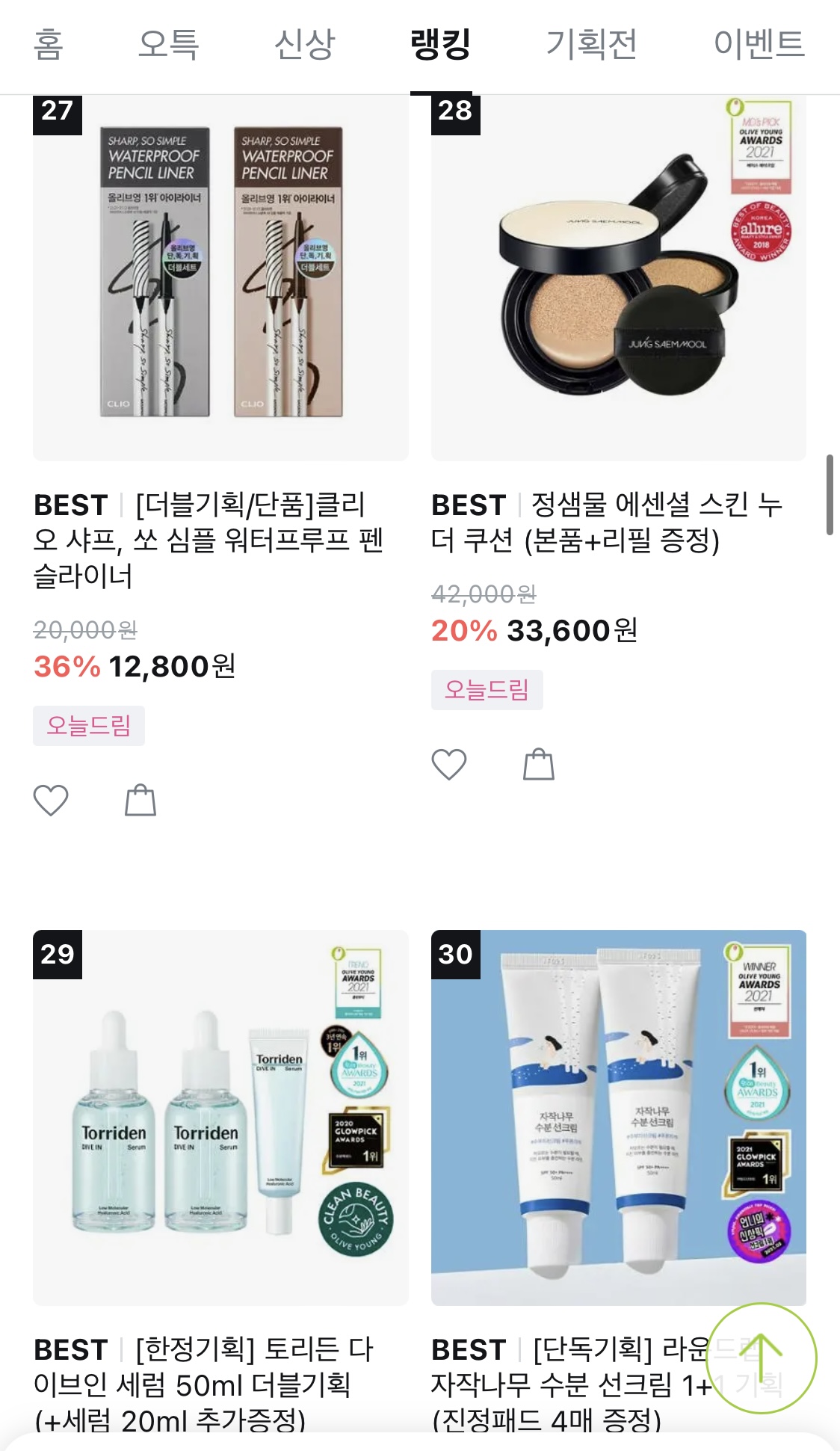 카테고리 없음 22년 9월 올리브영 빅세일 Yunji- 2022. 9. 4. 19:43 9월 1일~ 9월 9일 앱에서 온/오프라인 쿠폰 오전 오후 12시마다 선착순 받기 올리브영 랭킹 30위 집 앞 올리브영에서 구매하고옴밤 늦게 갔더니 없는 것들 너무 많아서🥲온라인 구매예정 공유하기 게시글 관리 버추얼리스트